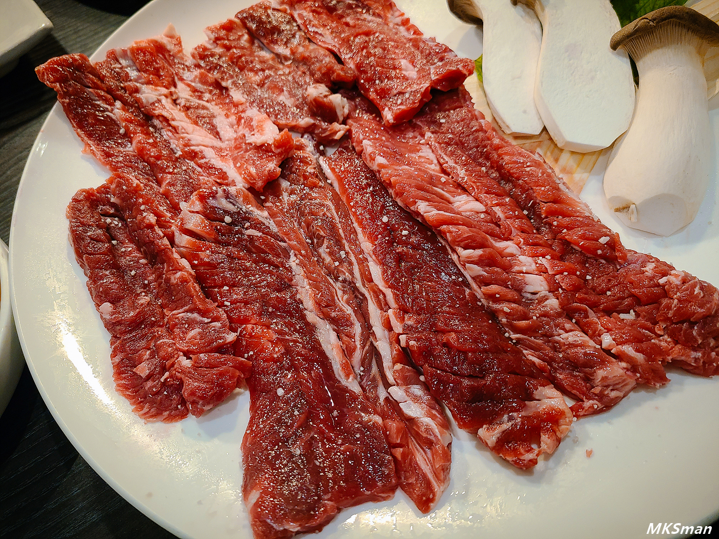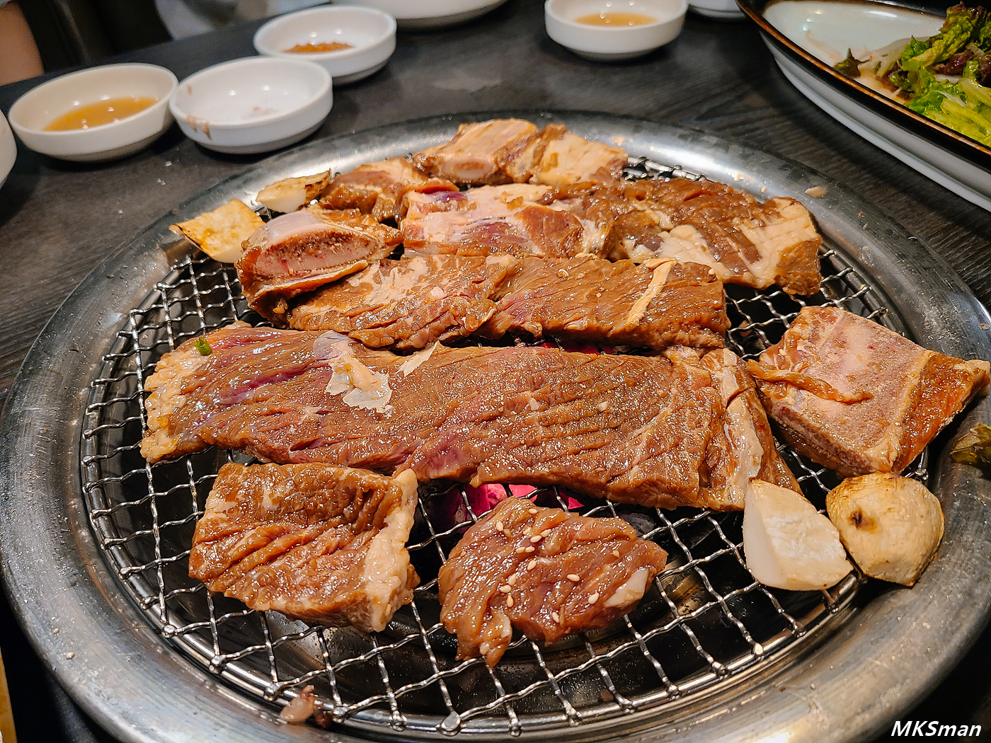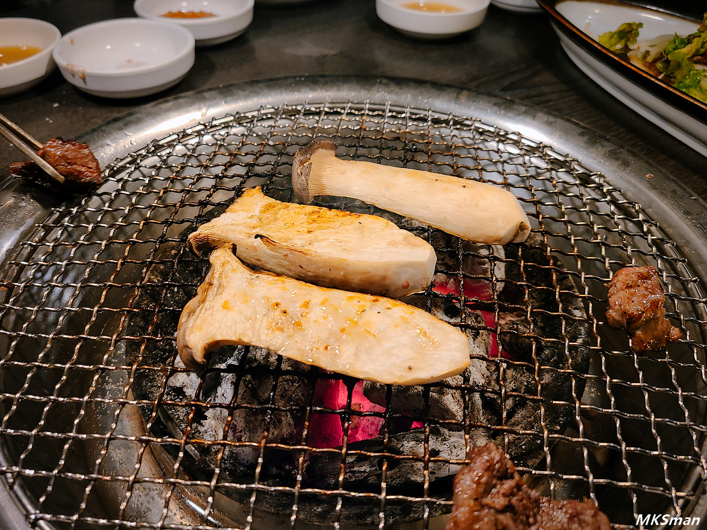소고기라 그런지 타기 전에 익는데로 입으로 들어가다 보니 사진 찍을 여력이 없네요.ㅎㅎ 버섯은 좀 더 익혀줘야 하니 덩그러니 남아 있습니다. 생갈비를 먼저 먹고 다음으로 양념 갈비를 주문합니다.