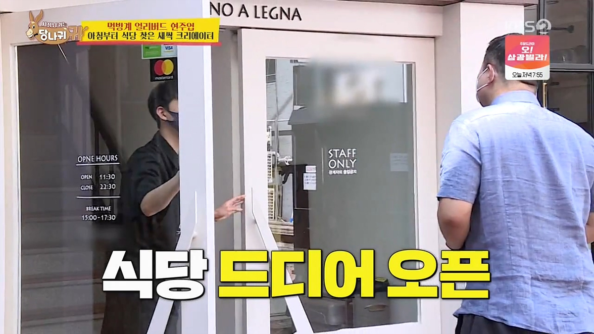 이번에도 식당에서 첫 스타트를 시작한 현주엽입니다. 가게 문이 오픈 되지도 않았는데 오픈을 기다리며 한끼 식사를 준비하고 있네요.