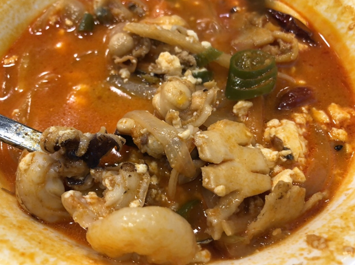 다양한 해산물과 순두부가 들어 간 순두부 짬뽕에는 특이하게 계란 후라이가 올라옵니다. 짜장면에 계란 프라이를 주는 건 봤었도 짬뽕에 프라이가 있는 건 정말 특이하다고 할 수 있습니다. 해산물이 그릇 가득 있으니 국물 맛이 시원할 수밖에 없는 치트키입니다.
