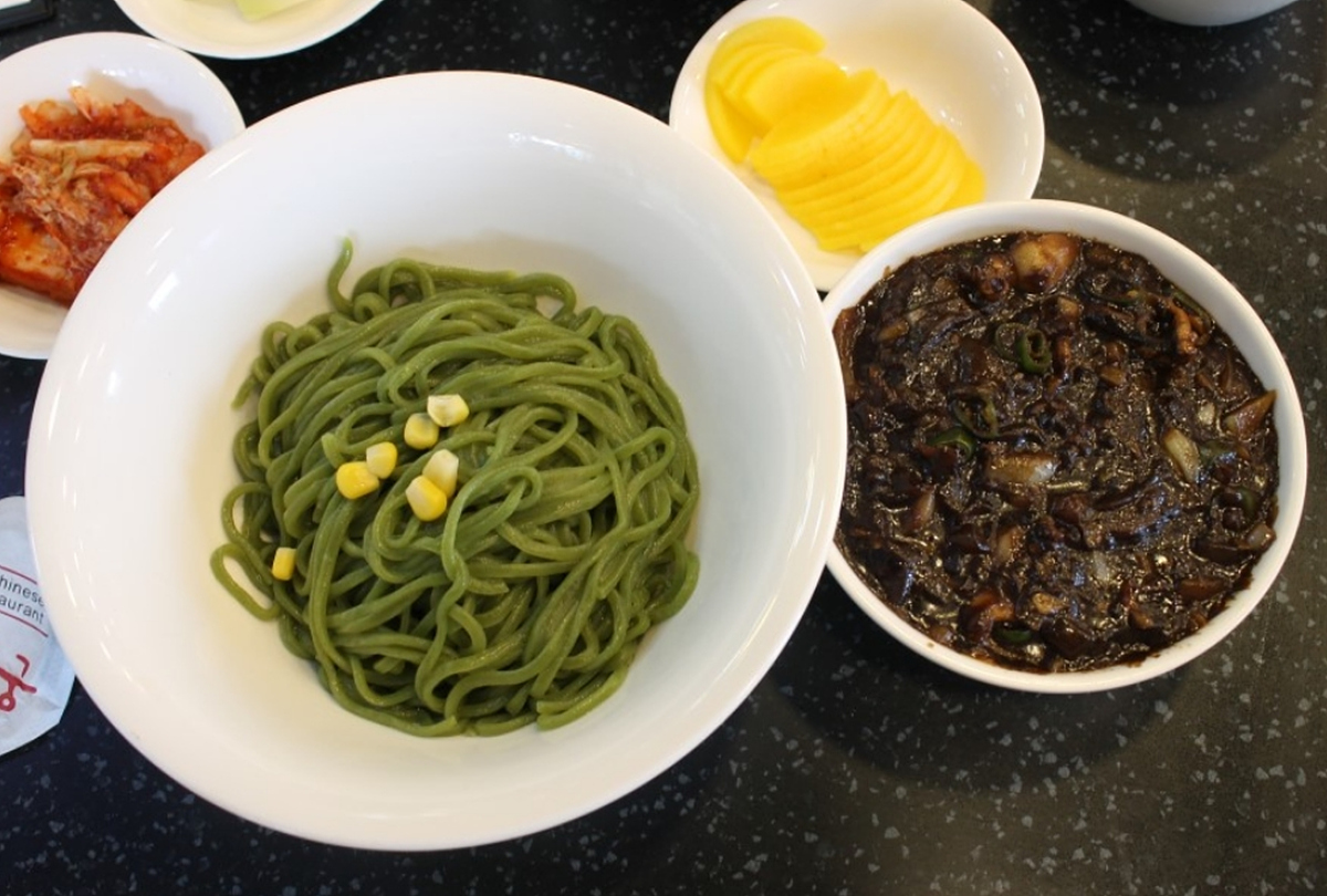 고기를 잘게 썰은 유니짜장도 면에 다양한 채소 즙을 넣어 건강한 면을 먹을 수 있습니다. 맛과 영양까지 함께 먹을 수 있고 특이함은 보너스입니다. 짜장에 계란 프라이가 없는 게 아쉽네요.