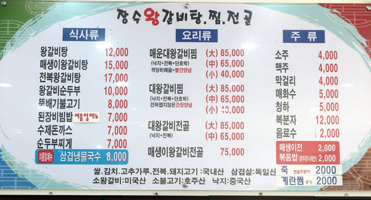 압도적인 비주얼로 눈도 호강하고 입도 호강하는 생생정보 고수의 부엌 "대왕소갈비찜" 전문점 장수왕갈비탕은 매주 수요일은 휴무라는 점 참고하시길 바랍니다.